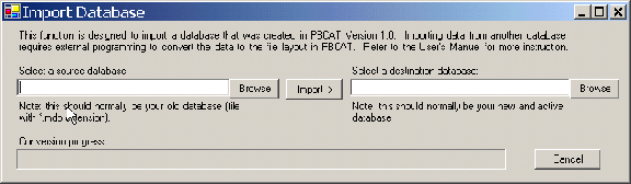 The import function is designed to import a database that was created in Version 1.0 of the PBCAT software. Selecting Import from the Database menu produces the window shown in figure 90. The steps for importing are as follows: