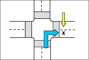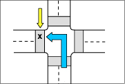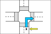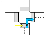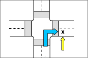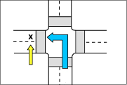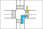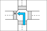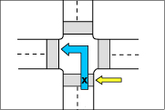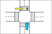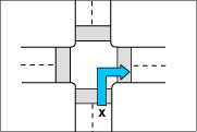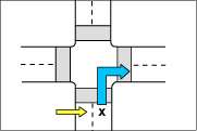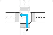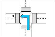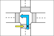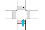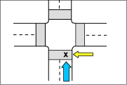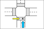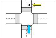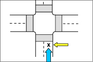 7b. Pedestrian within crosswalk area, approach direction opposite motorist’s. |