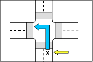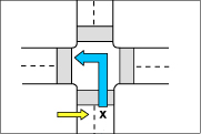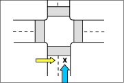 11b. Pedestrian within crosswalk area, approach direction opposite motorist’s. |